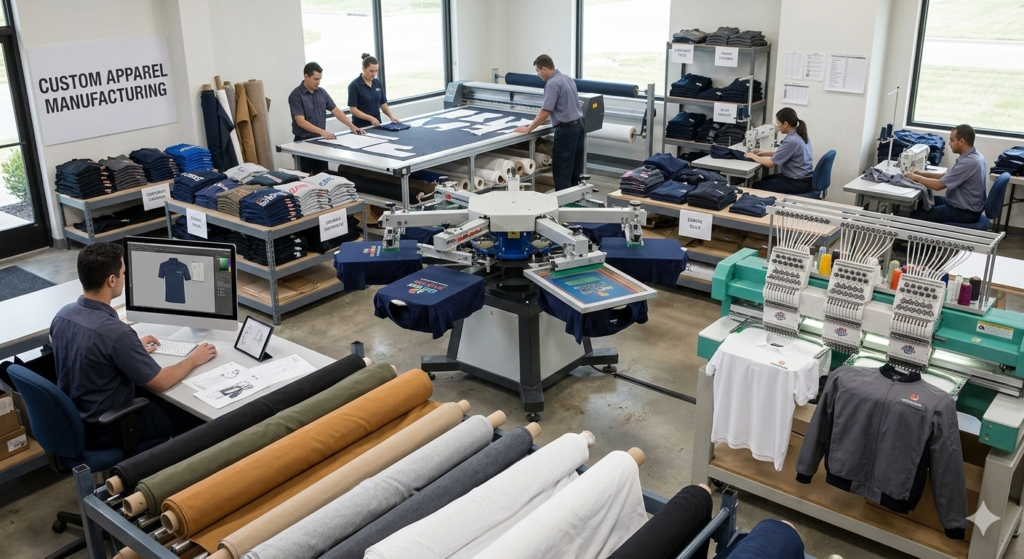 Our team focuses on premium fabrics, precise stitching, and modern designs to ensure comfort, durability, and a professional look. We offer bulk manufacturing, custom branding, embroidery, and printing services tailored to meet the needs of companies, events, and industries.
